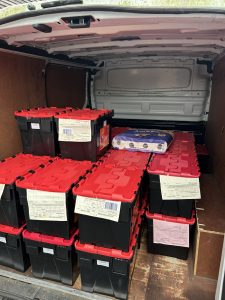 After collecting orders from both Morrisons and Tesco, we packed the van with boxes marked neatly for each customer — some with just a few items, others stacked high. Then we set off on a route Alan knew like the back of his hand.